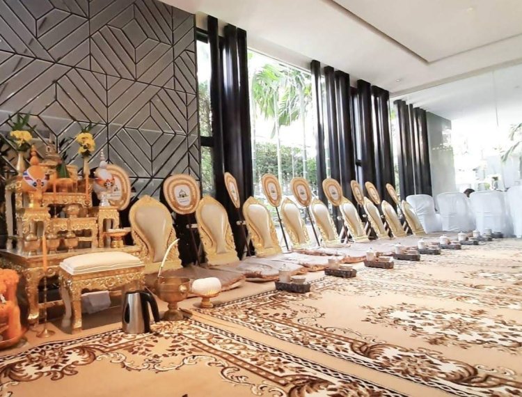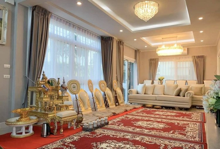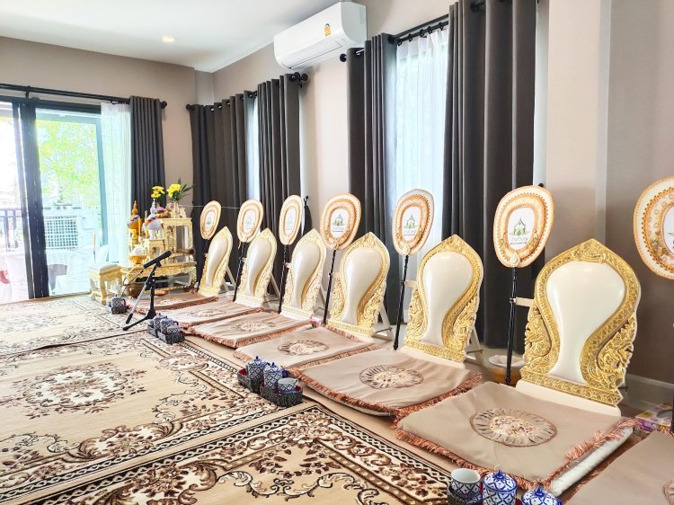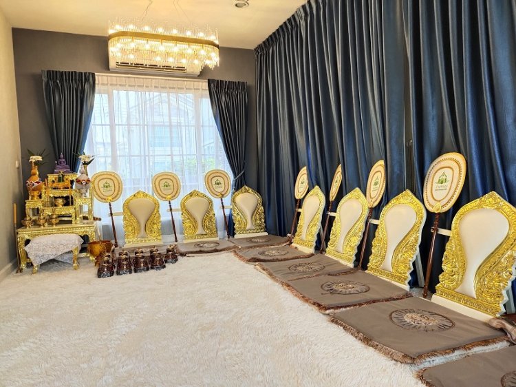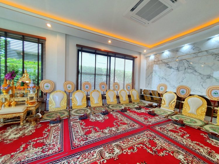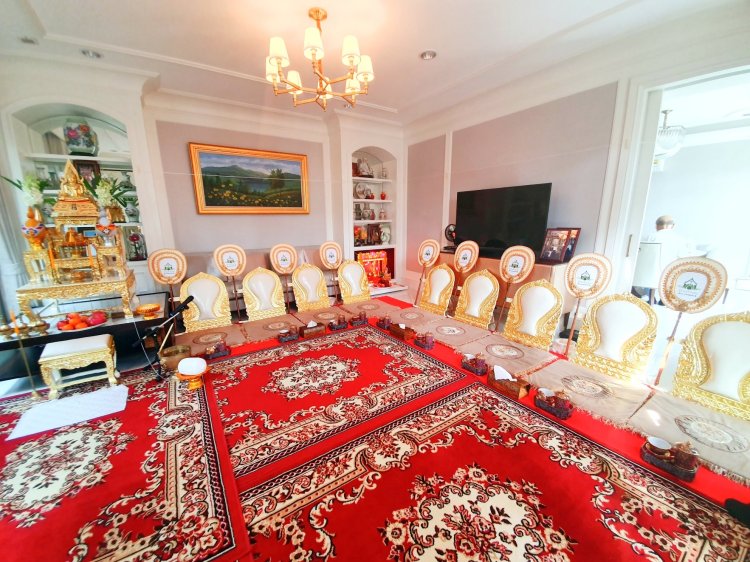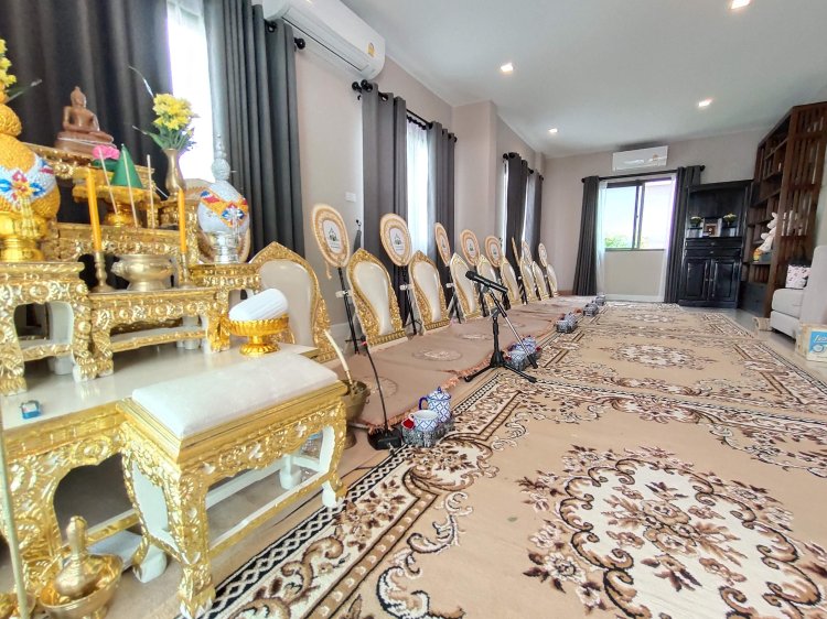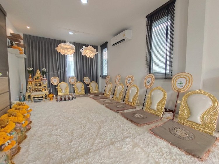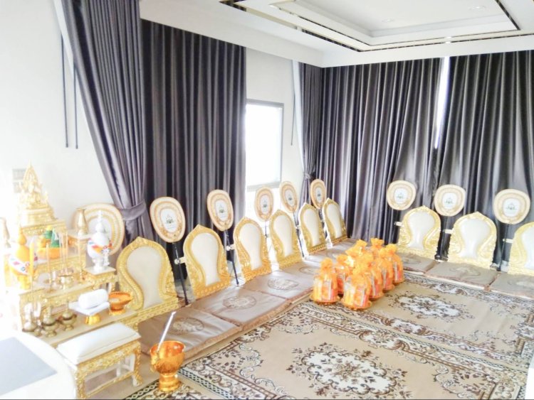 อุปกรณ์พิธีสงฆ์ครบชุด (โต๊ะหมู่บูชา พานพุ่ม แจกัน เชิงเทียน ชุดเจิม ชุดกรวดน้ำ ขันทำน้ำมนต์ อาสนะไม้แกะสลักปิดทอง อาสนะรองนั่ง ชุดกี๋มุข พรม) นิมนต์รับส่งพระ, ชุดสังฆทาน+พวงมาลัย, ผู้ดำเนินพิธี จัดเตรียมสถานที่ล่วงหน้า 1 วัน