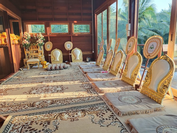 บริการเช่าอุปกรณ์พิธีสงฆ์ ประกอบด้วย โต๊ะหมู่บูชา, แจกันดอกไม้ เชิงเทียน กระถางธูป พานพุ่มเงินพุ่มทอง ชุดเจิม ชุดกรวดน้ำ ชุดขันทำน้ำมนต์ ชุดกี๋มุก อาสนะไม้สีทอง, อาสนะรองนั่ง, พรมหลุยส์ขนาดใหญ่ 5 ผืน จัดเตรียมสถานที่ล่วงหน้า 1 วัน